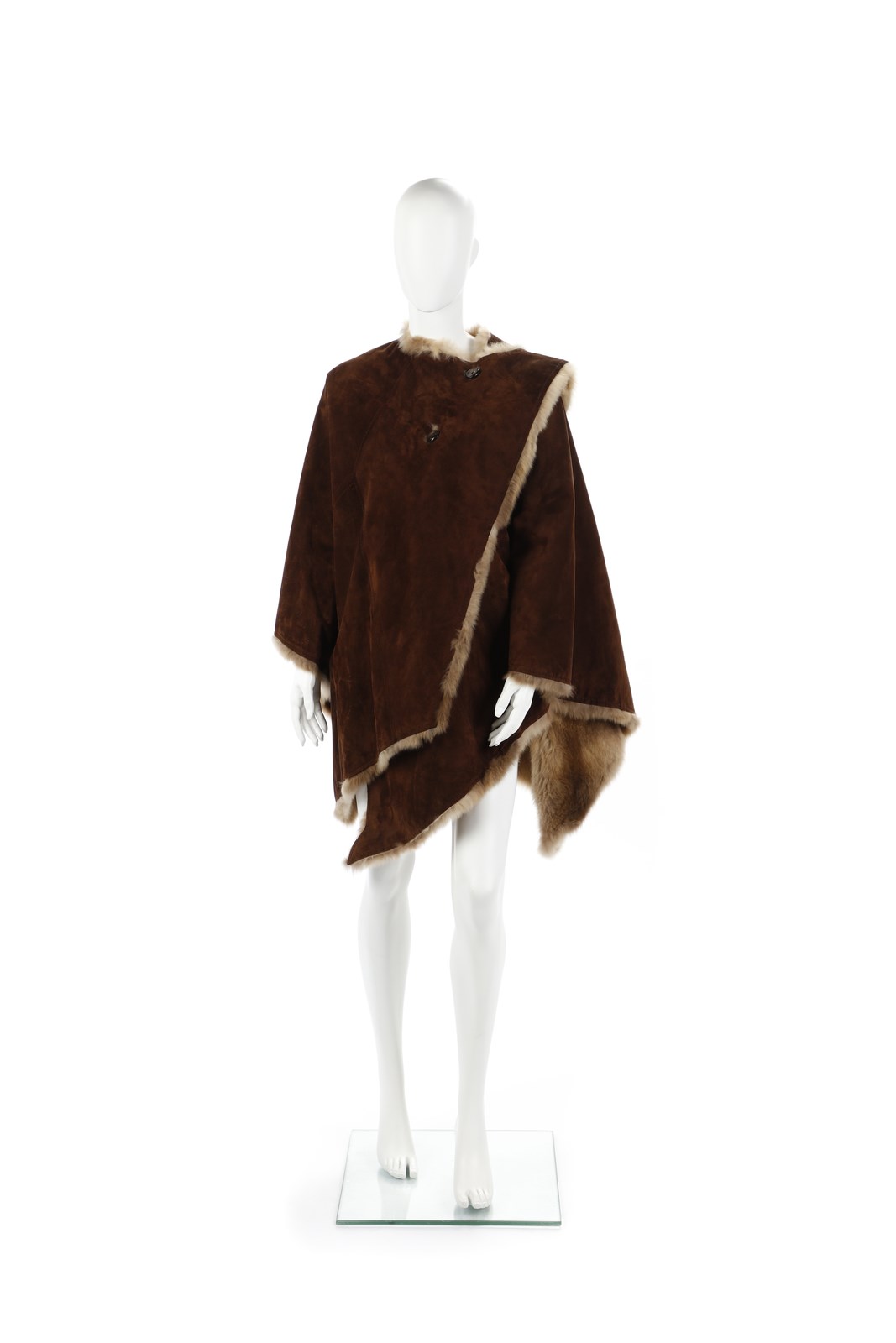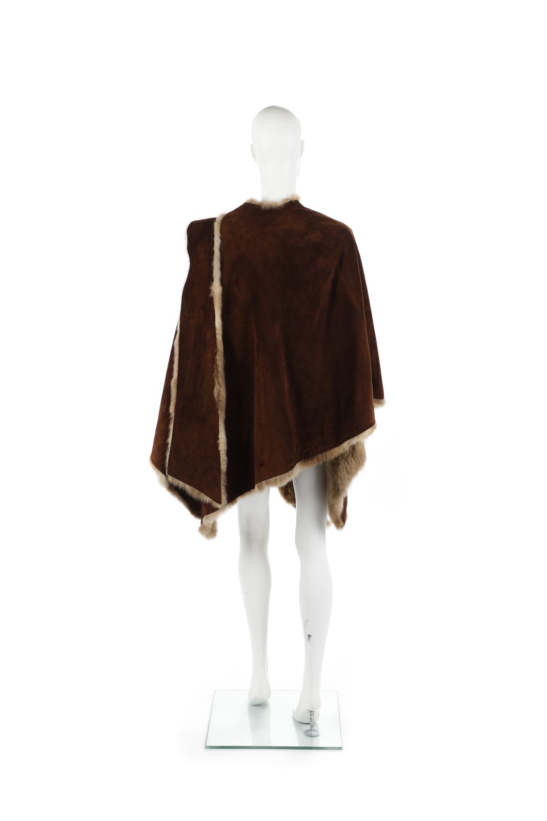AUTORE NON IDENTIFICATO - Mantella double face in volpe e pelle scamosciata marrone.