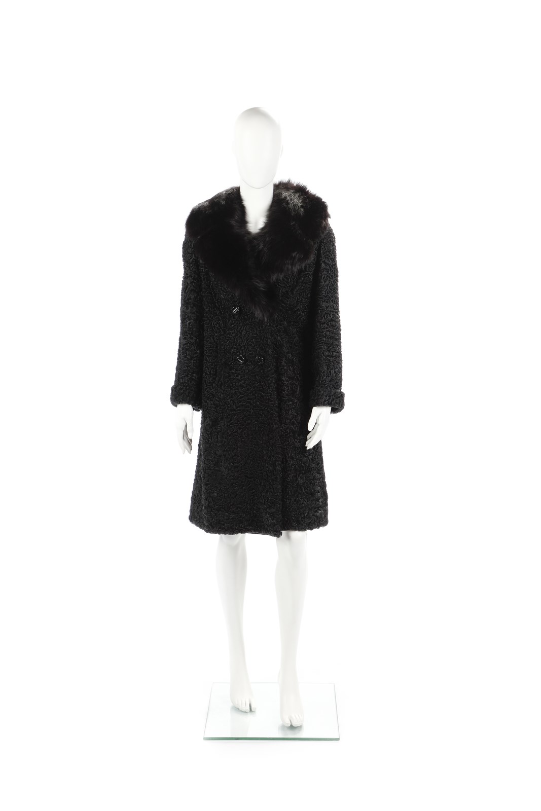AUTORE NON IDENTIFICATO - Pelliccia in astrakan nero e collo in volpe.