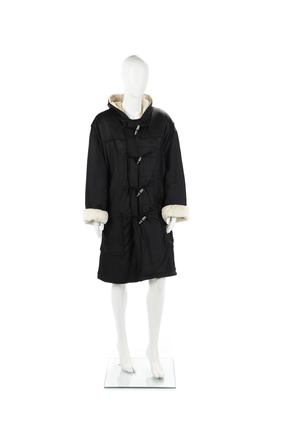 GAULTIER JEAN-PAUL - Cappotto montgomery nero foderato in lana con alamari in metallo.