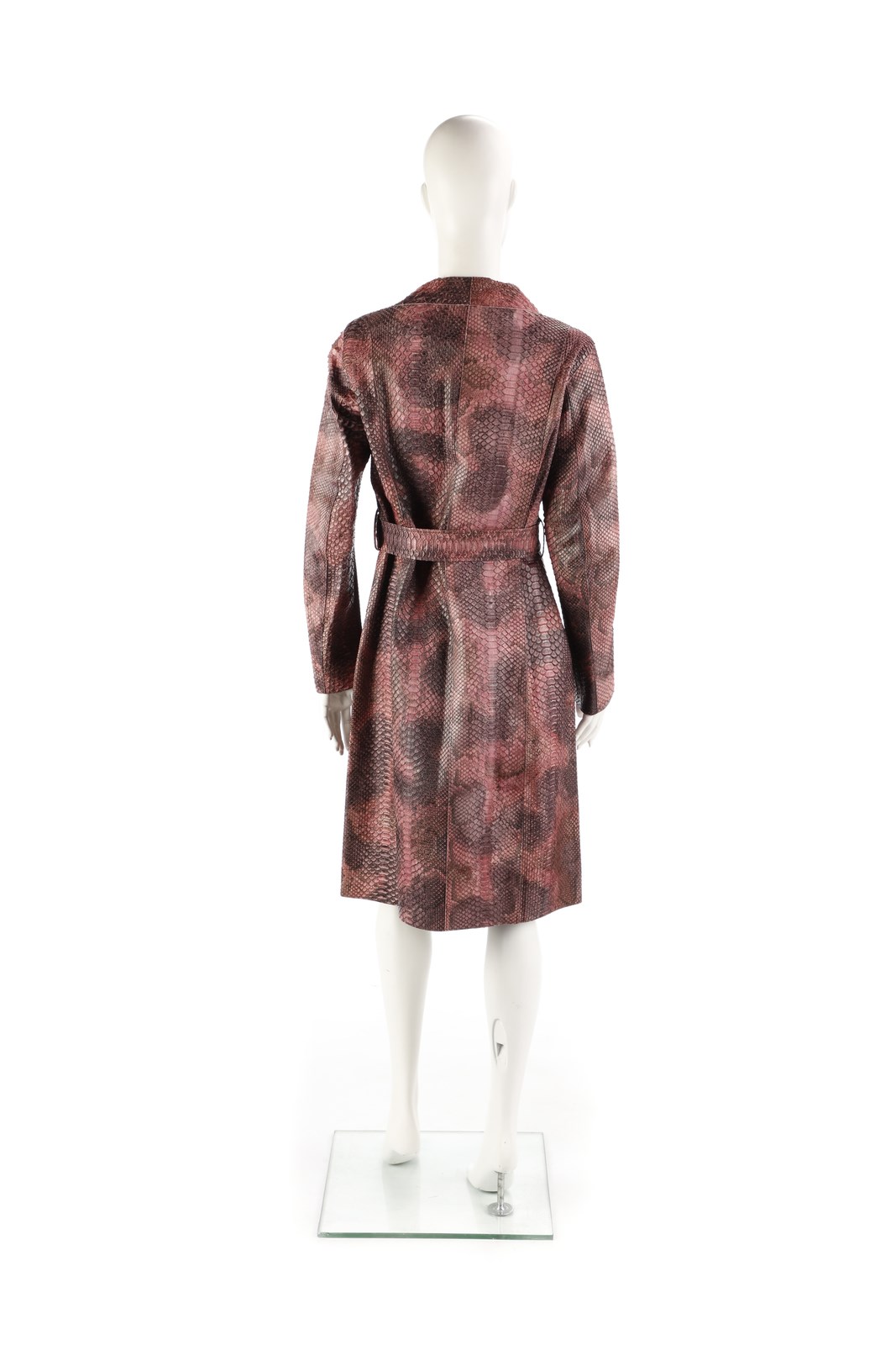Lotto 196 | PRADA MILANO - Cappotto in pitone con cintura nei toni del rosa. Taglia 42IT.