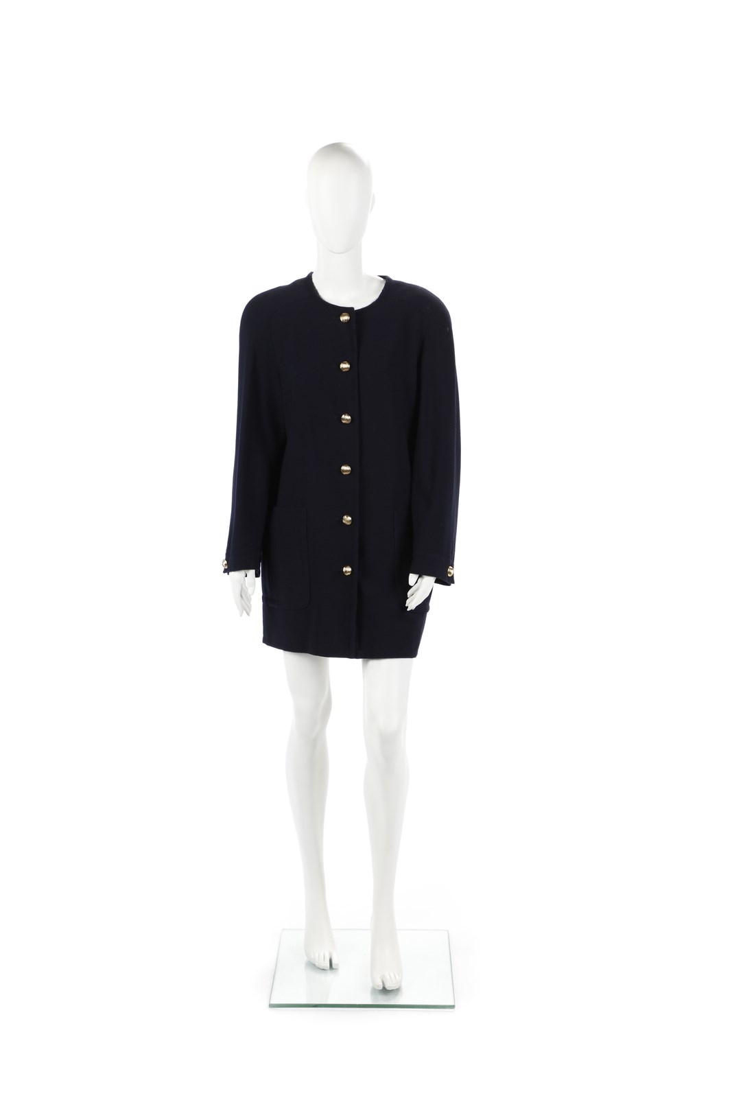 VALENTINO - Soprabito blu scuro con bottoni dorati. Taglia 44 IT, etichetta presente. Anni 90'.