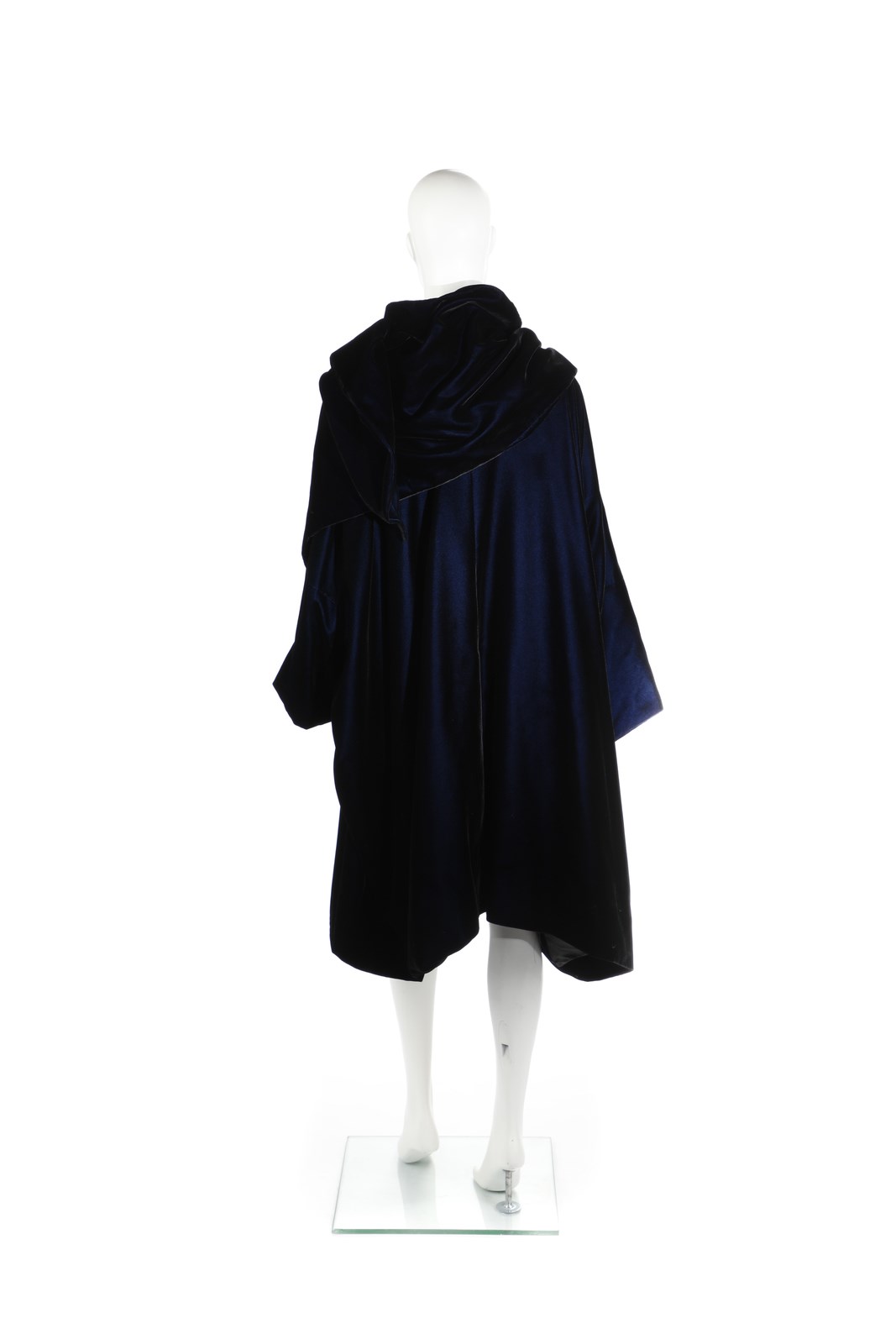GIGLI ROMEO Rara Cappa in velluto cangiante nero blu, anni 90'. Velluto. . Presente etichetta. Made in Italy.