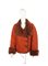 MIYAKE ISSEY Giaccone arancione plissettato con interno in eco pelliccia marrone. Seta,velluto, pelliccia.. . Taglia 42.