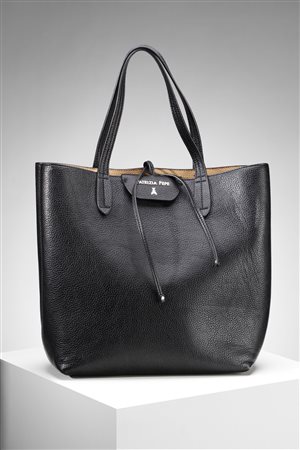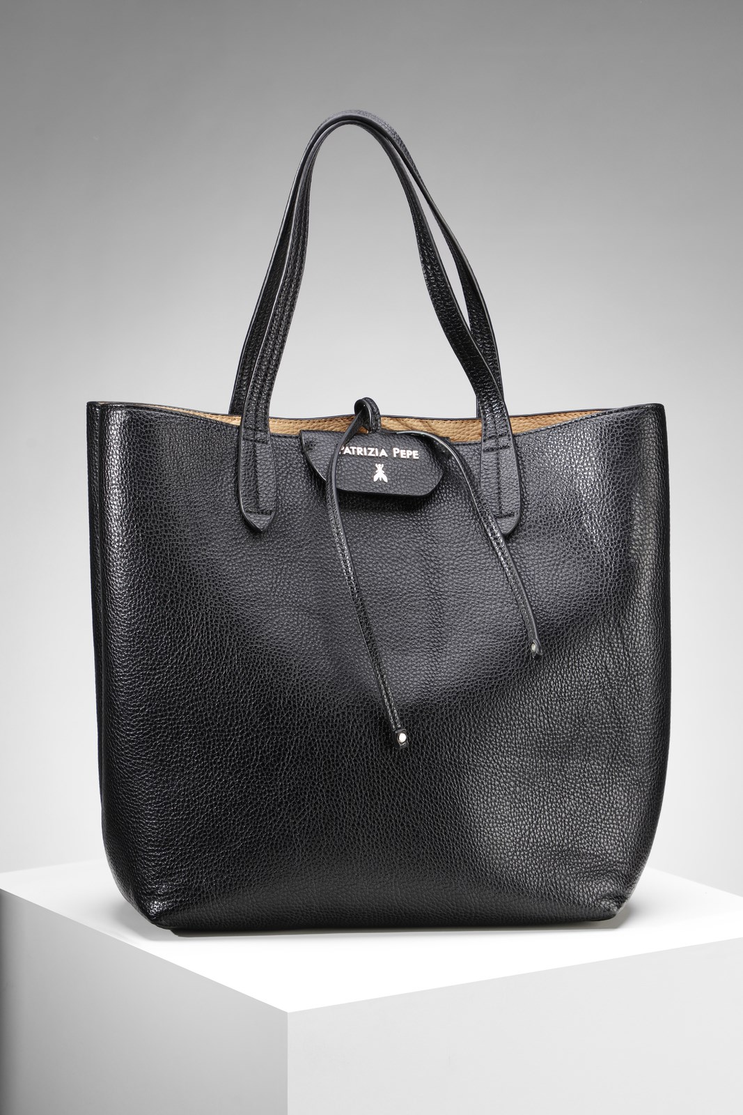PEPE PATRIZIA Tote bag nera con manici. Pelle. . Dust bag.