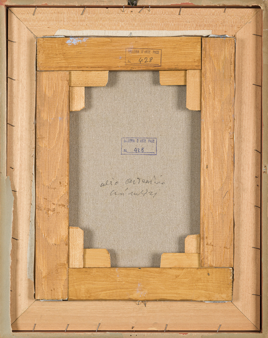 Autentica dell'Artista con timbro della Galleria Pace (MI) su fotografia