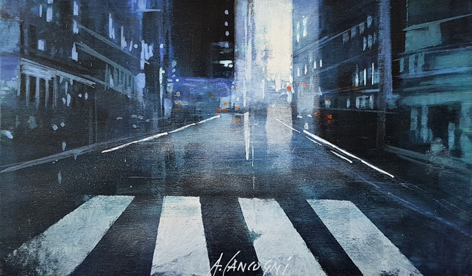 CANCOGNI AGOSTINO Forte dei Marmi (Lucca) 1950 Sera in Città Olio su Tavola...
