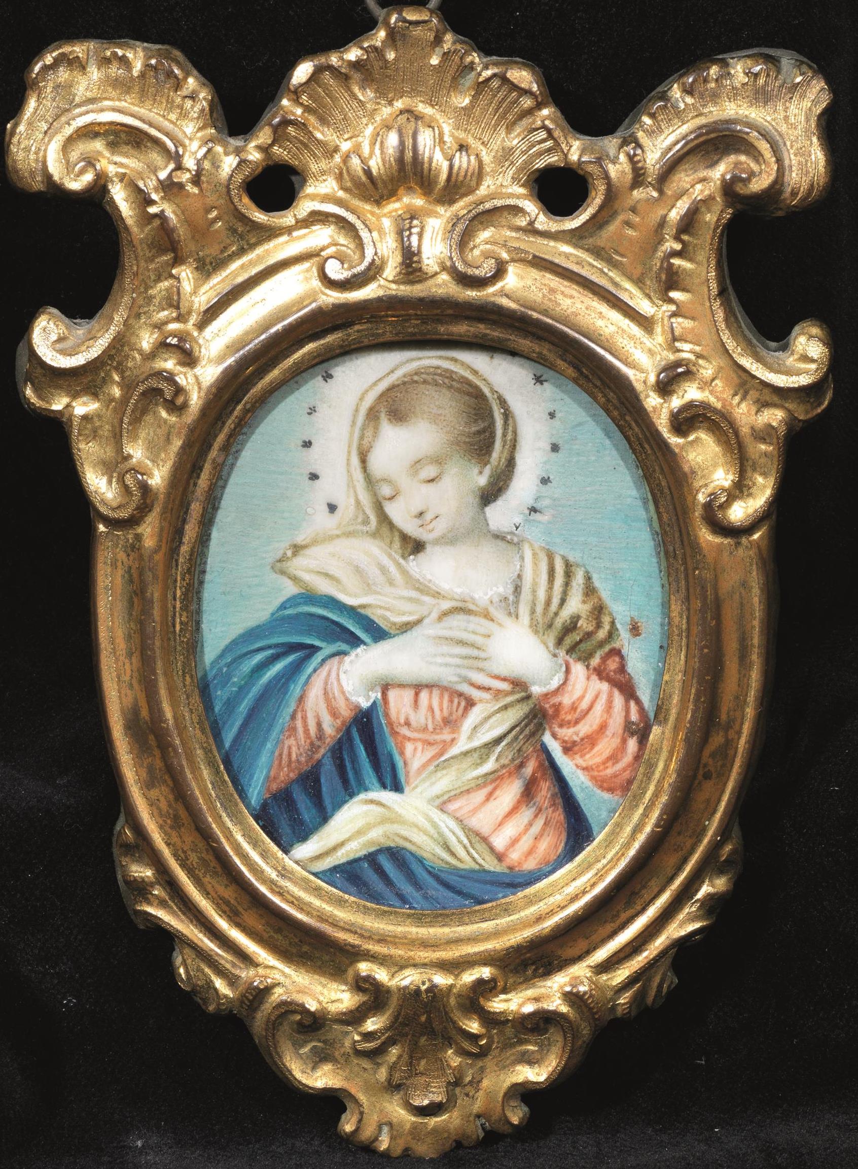 Scuola Italia centrale, sec. XVIIIVERGINE ANNUNCIATAminiatura su avorio...