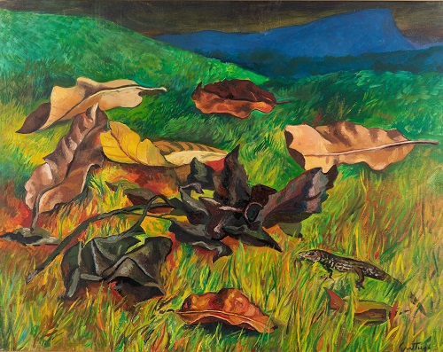 Renato Guttuso “Foglie e ramarro” databile 1983