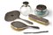 Set da toilette in argento e vetro, composto da 6 pezzi. Italia, Firenze, argentiere Fratelli Pistolesi, marchio del 'fascio', 1935-44. Lievi difetti.