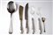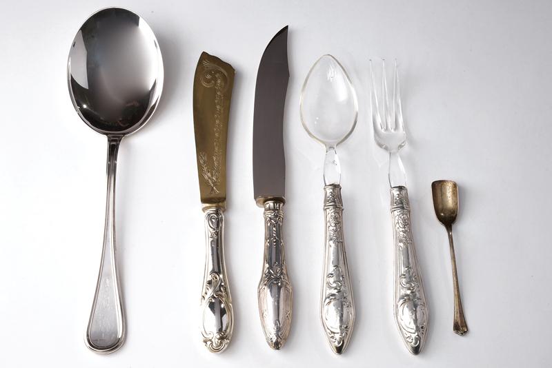 Lotto di 5 posate a servire in argento unito ad una paletta da zucchero. Italia, XX secolo. Peso argento g 180 ca. Lievi difetti.