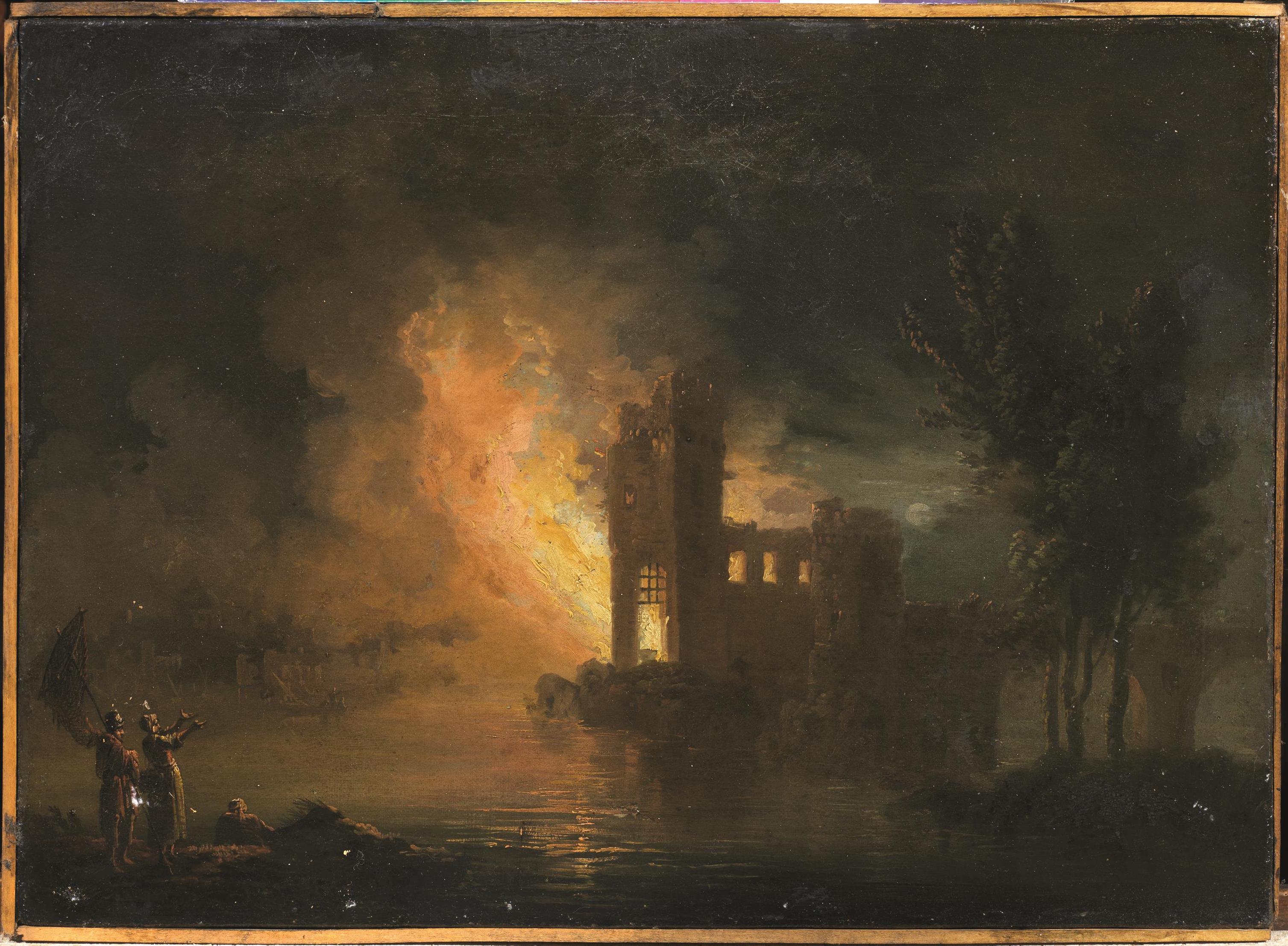 Attribuito a Gregorio Fidanza(Collevecchio 1754 - Roma 1823)INCENDIO NOTTURNO...