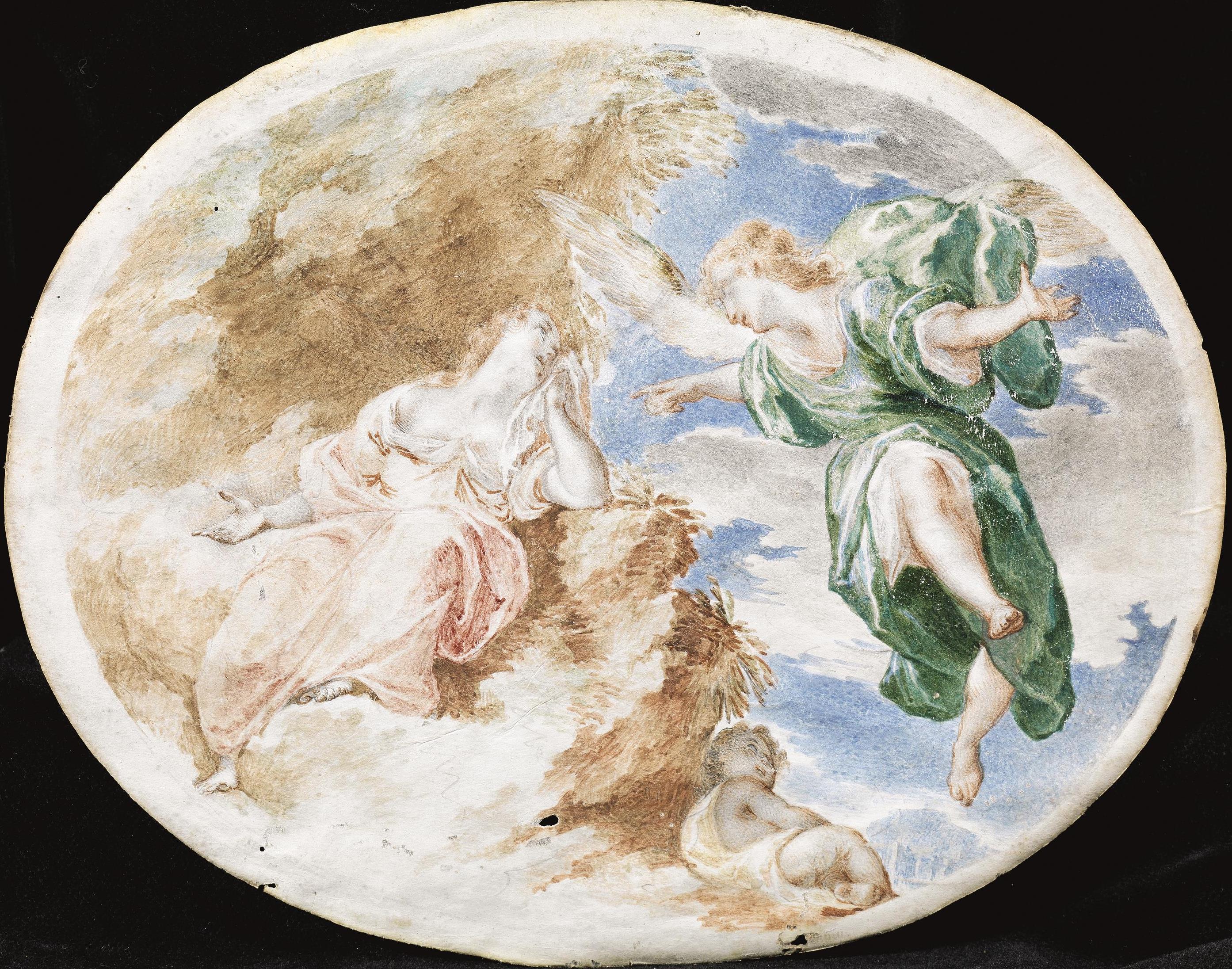 Scuola italiana, sec. XVIIIAPPARIZIONE DI UN ANGELOtempera policroma su carta...