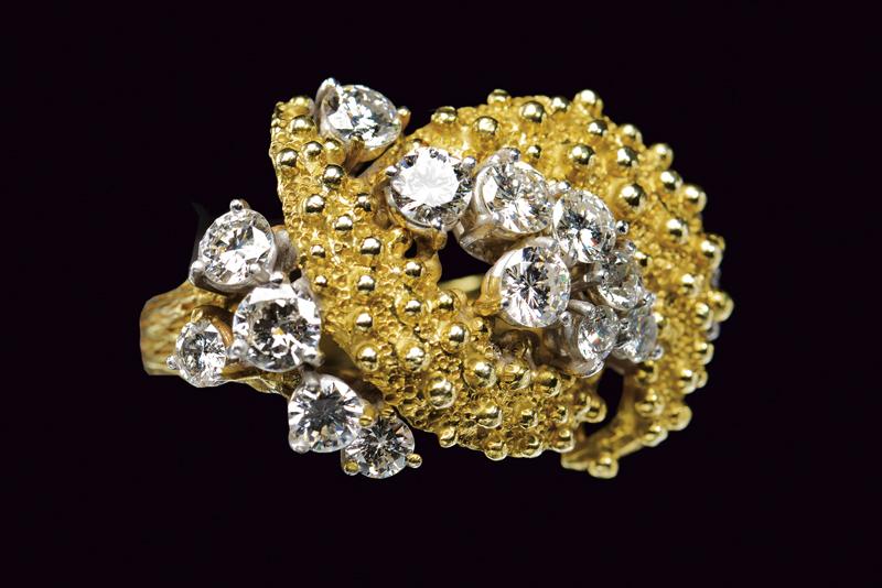 Lotto 172 | Grande anello in oro giallo e diamanti
