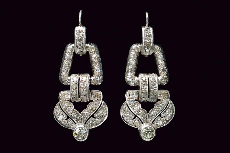 Lotto 187 | Orecchini Art Déco in platino e diamanti. 1920 ca