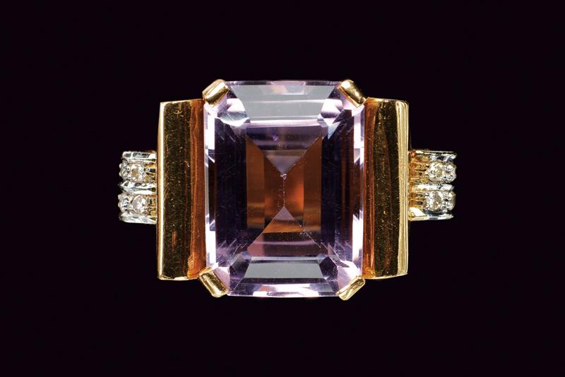 Anello Tank in oro con ametista da 22.0 ct e diamanti