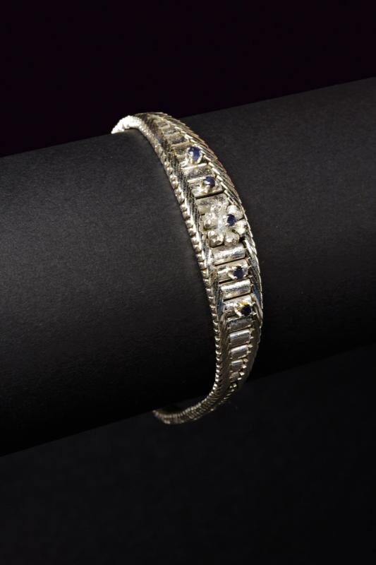 Bracciale semi-rigido in oro bianco 750/000 con piccoli zaffiri. Lunghezza cm 20, peso 27 gr.