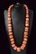 Imponente collana in corallo formata da 40 barilotti sfaccettati a mano con misure a degradare da mm 18 x 27 a mm 11 x 7, fermezza in oro 500/000 con cabochon di corallo. Punzoni oro 500. Lunghezza cm 61, peso 250 gr. Il lotto é stato identificato come contenente materiali organici che possono essere sottoposti a restrizioni per l'importazione o l'esportazione. Chi fosse interessato é pregato di mettersi in contatto con i nostri uffici prima dell'asta