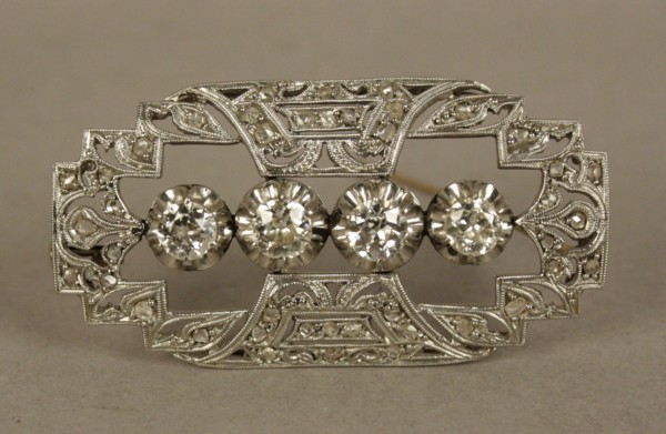 Lotto 194 | Firmato. Spilla Liberty in oro bianco e diamanti, gr. 11, kt 2.