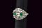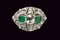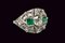 Anello a cupola in oro bianco, diamanti e smeraldi