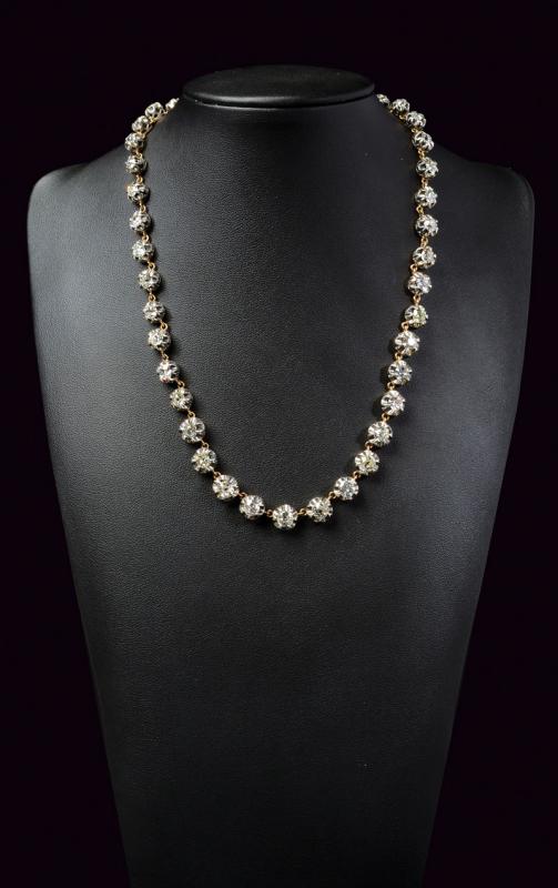 Bellissima collana riviere di diamanti in oro ed argento impreziosita da quarantatre diamanti taglio vecchio a scalare da 0.60 ct a 0.20 ct per un totale complessivo di 20,0 ct circa, lunghezza cm 40, Peso 34,5 gr