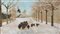 Francesco Gioli (1846 - 1922) MAIALINI NEL VIALE olio su tavola, cm 19x33 firma...