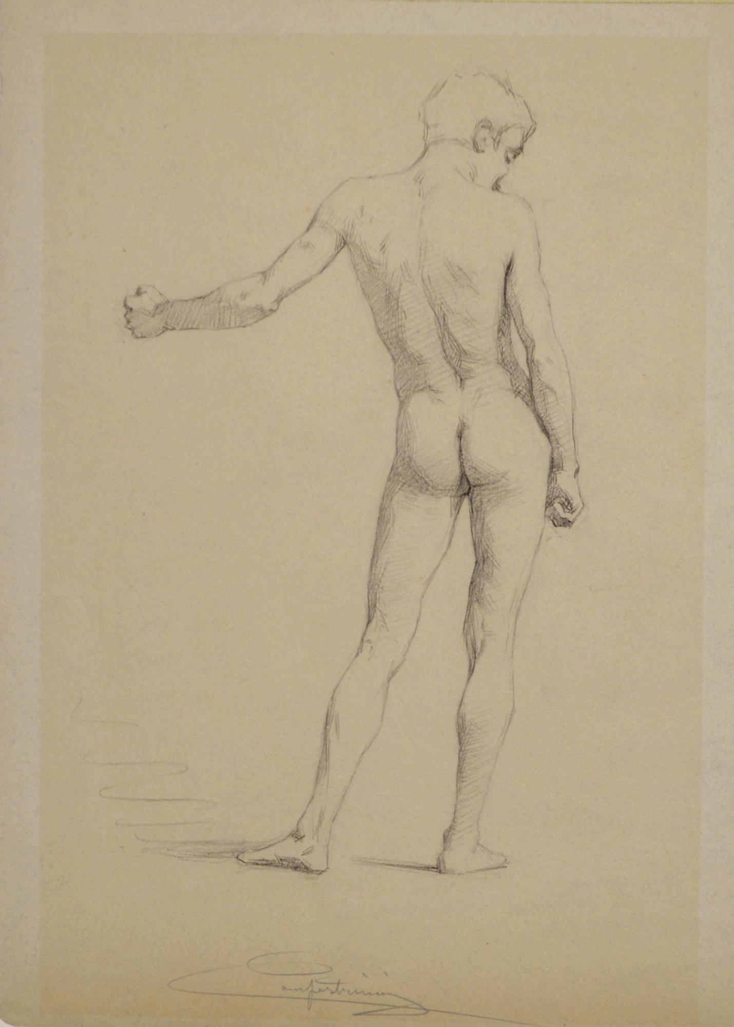 Alcide Davide Campestrini (1863 - 1940) NUDO MASCHILE DI SCHIENA matita su...