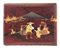Piatto anteriore in lacca dipinto, decorato con veduta del Monte Fuji e personaggi, piccoli intarsi in madreperla, alcuni mancanti, dorso in lacca decorato con veduta panoramica.