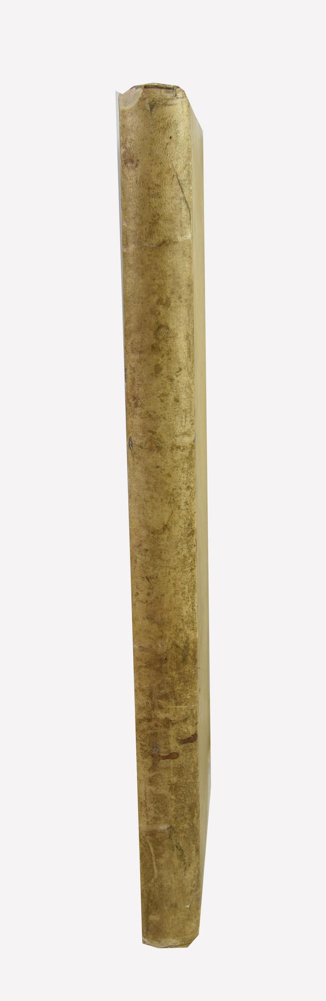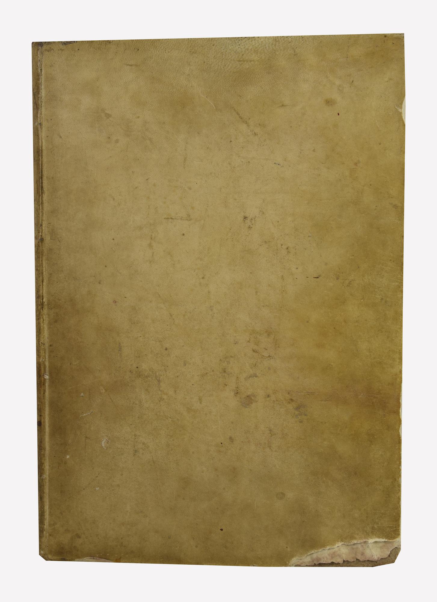 Capilettera ad inchiostro rosso. Legatura in pergamena.