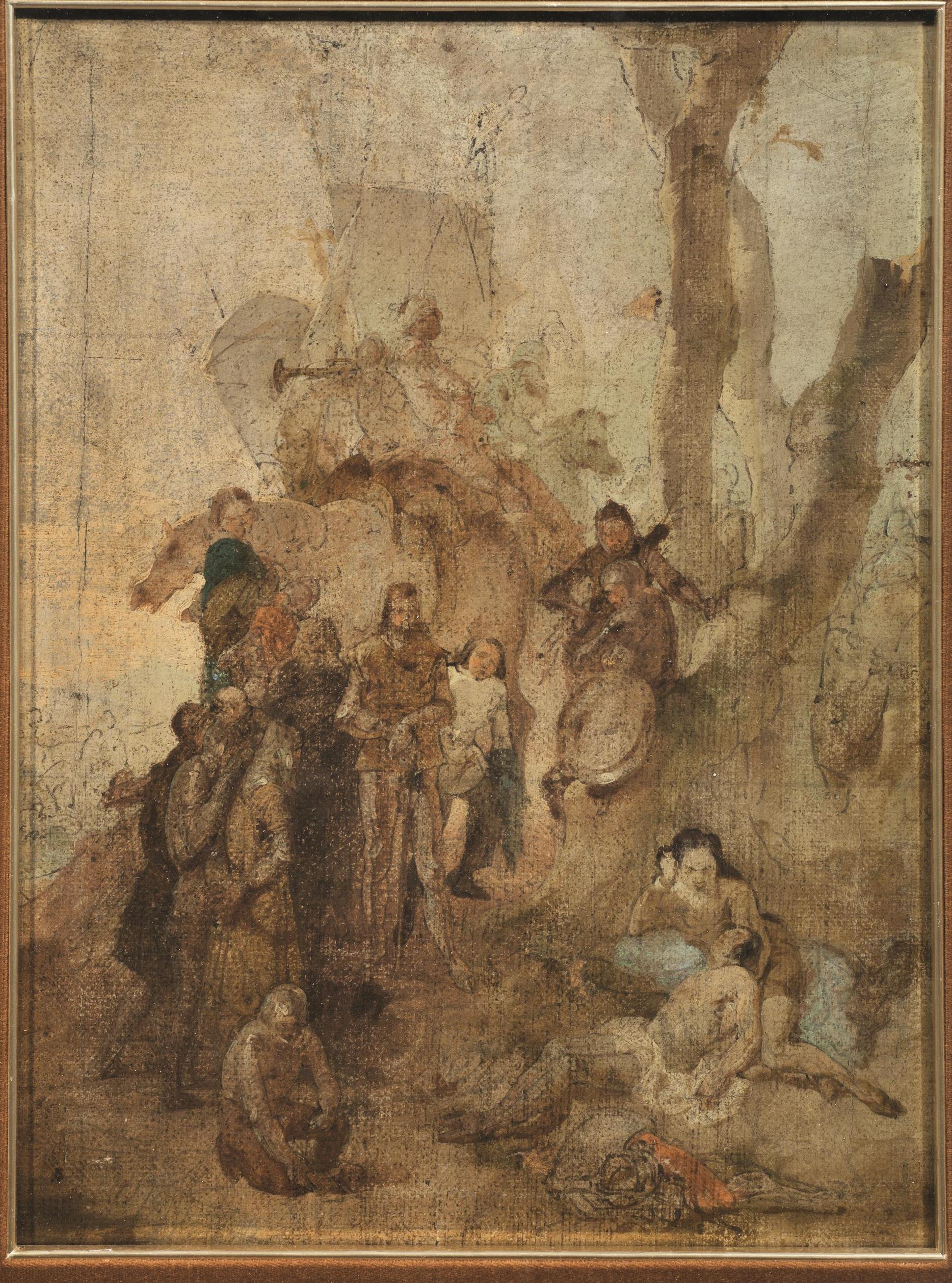 Giuseppe Diotti (Casal Maggiore, Cremona 1779 - 1846) SCENA MEDIEVALE olio su...