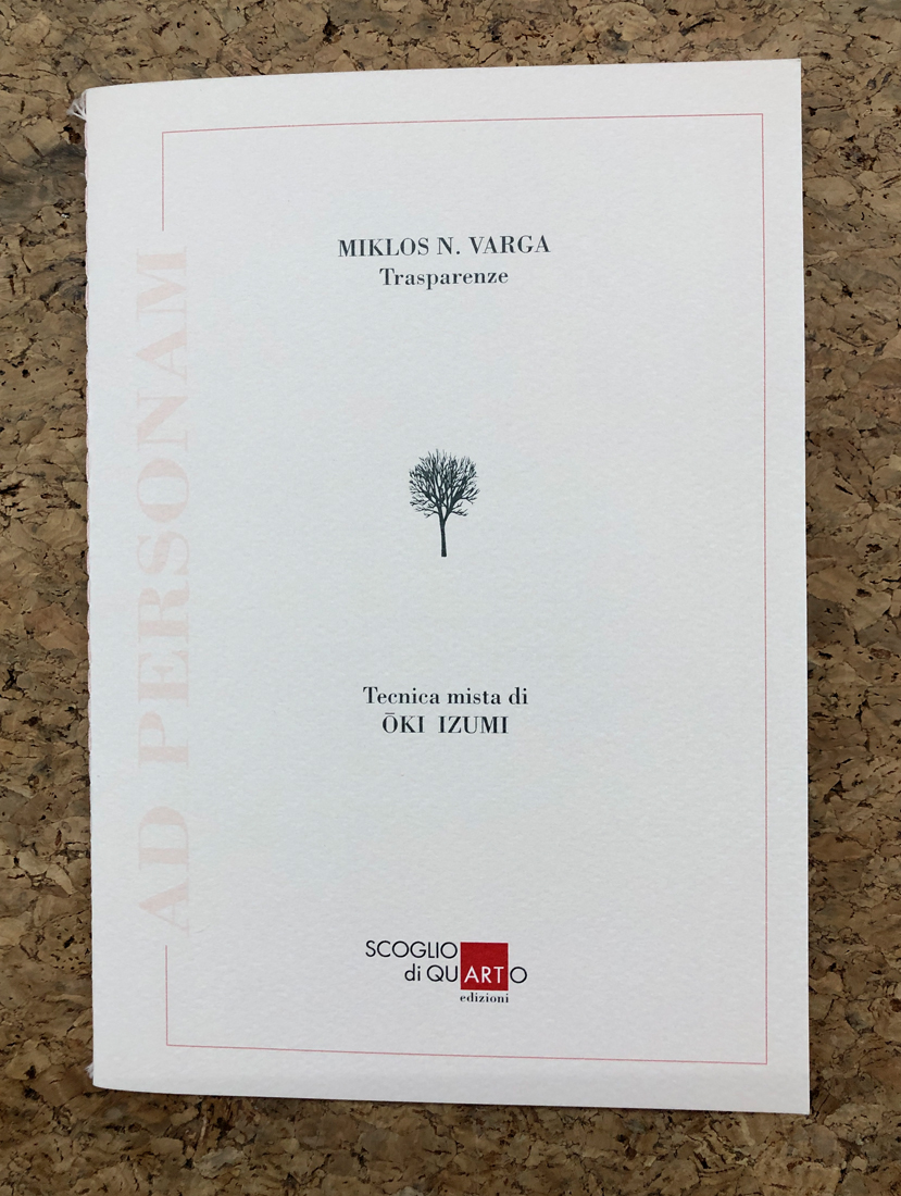 Libretto facente parte della collana Ad Personam curata da Gabriella Brembati e Miklos N. Varga, Galleria Scoglio di Quarto, Milano, edito in 30 esemplari numerati contenenti un pezzo unico ciascuno