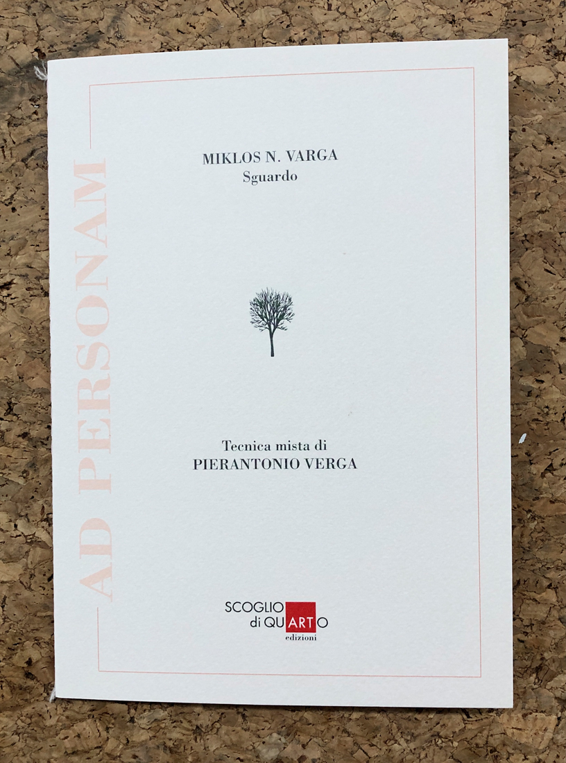 Libretto facente parte della collana Ad Personam curata da Gabriella Brembati e Miklos N. Varga, Galleria Scoglio di Quarto, Milano, edito in 30 esemplari numerati contenenti un pezzo unico ciascuno