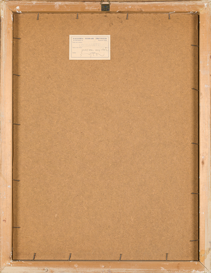 Etichetta della Galleria Ferrari (BG) al retro