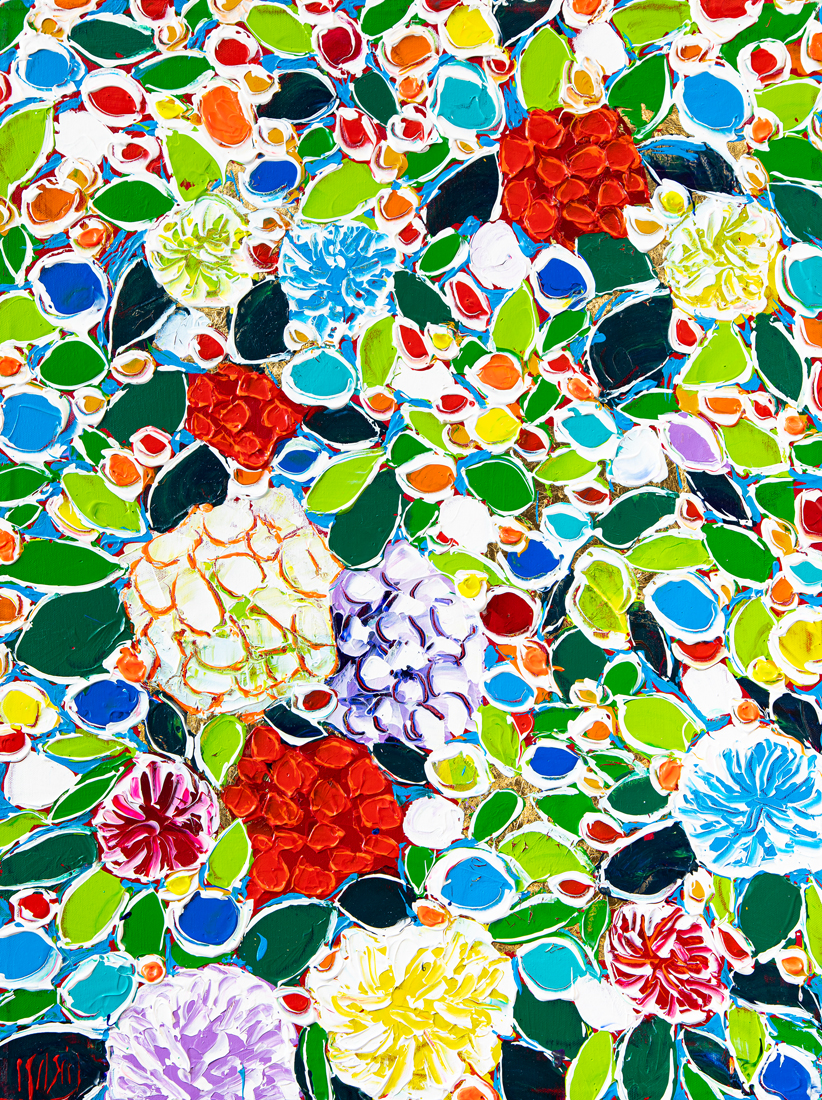 ROBERTO MASIA (1958) - Maggio nel giardino di Monet ortensie fra i fiori, 1997