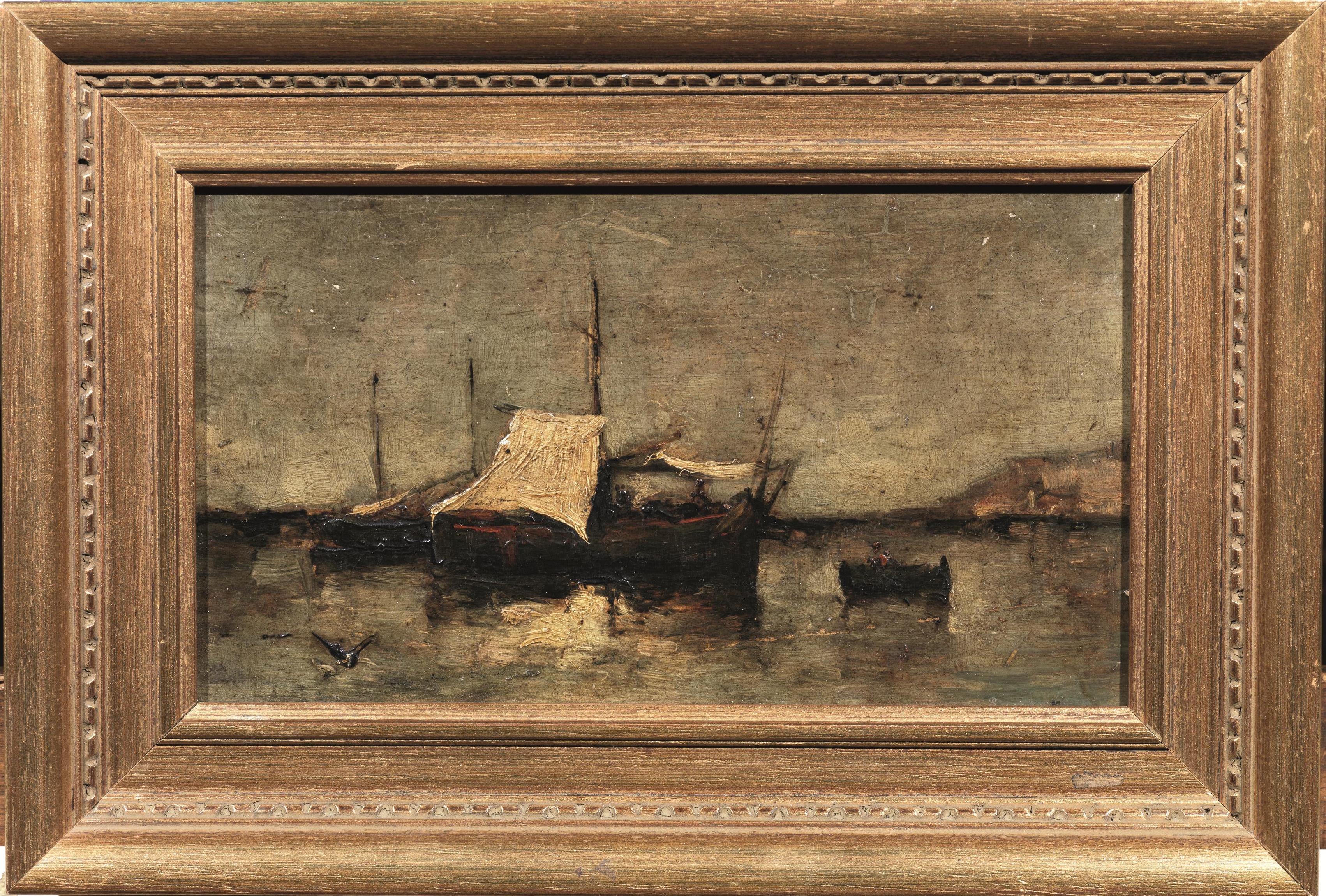 Lotto 129 | Attribuito a Henrik Willem MesdagBARCHE A LARGO. SCHEWERINGERolio su...