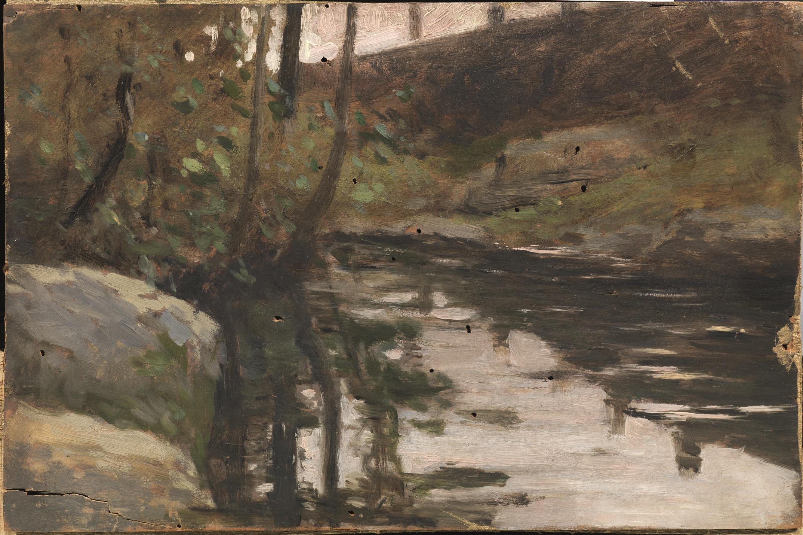 Scuola lombarda, sec. XIXPAESAGGIO SUL FIUMEolio su tavoletta, cm 19,5x29,5...