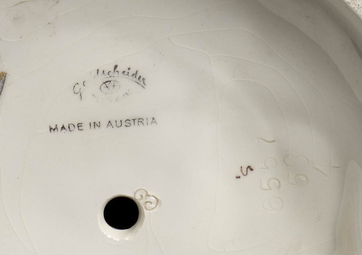 Terraglia modellata a colaggio decorata in policromia sotto vernice. Bibliografia: Dechant, Goldscheider, History of the Company and catalogue of works