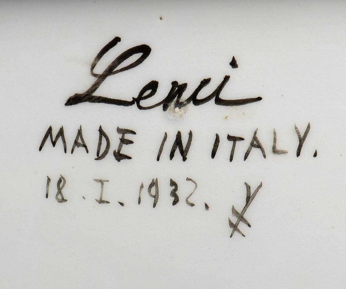 eca il nome Sturani per esteso sulla parte posteriore. Recante alla base firma Lenci MADE IN ITALY-18.1.1932, con simbolo del decoratore mod. n. 208