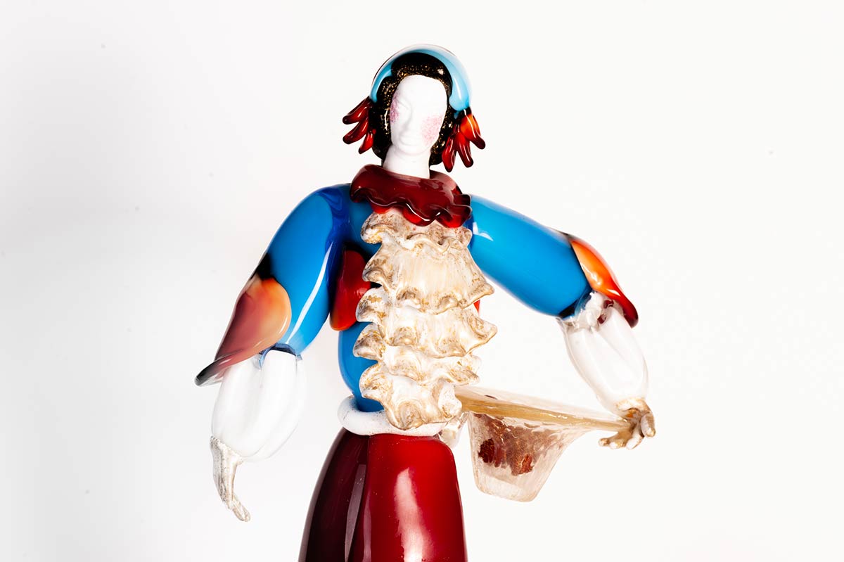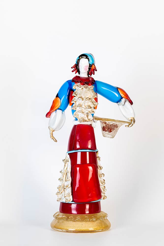 Scultura in vetro di Murano raffigurante una fanciulla in abiti tradizionali, primi anni '80 del 900