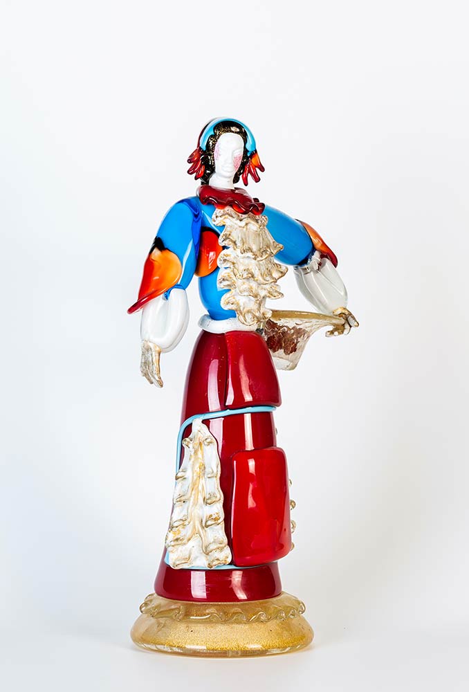 MANIFATTURA MURANESE<br>Scultura in vetro di Murano raffigurante una fanciulla in abiti tradizionali, primi anni '80 del 900