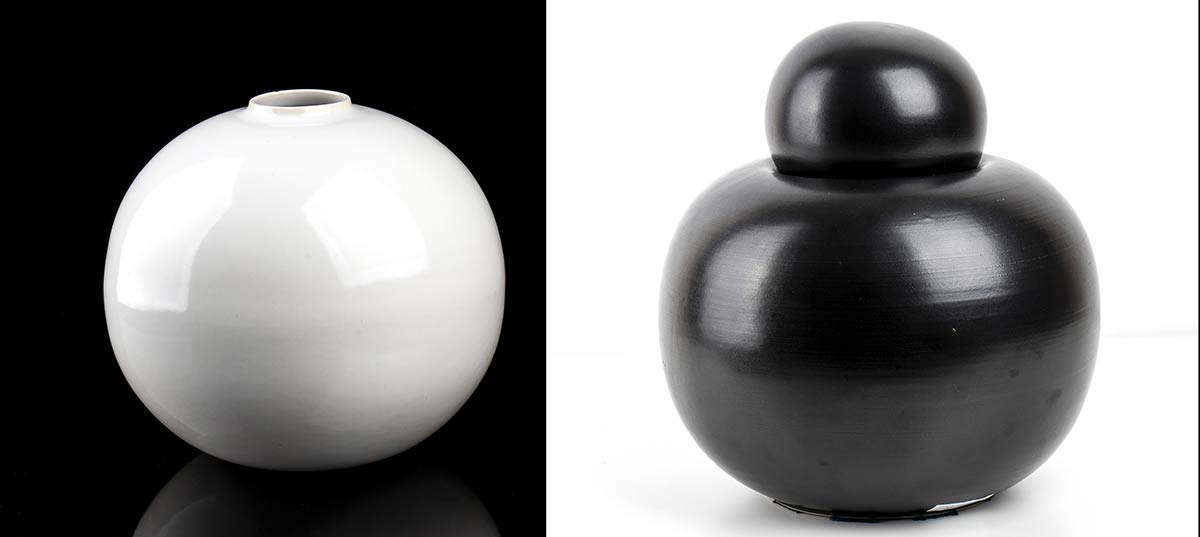 Un vaso Gabbianelli bianco e un vaso nero