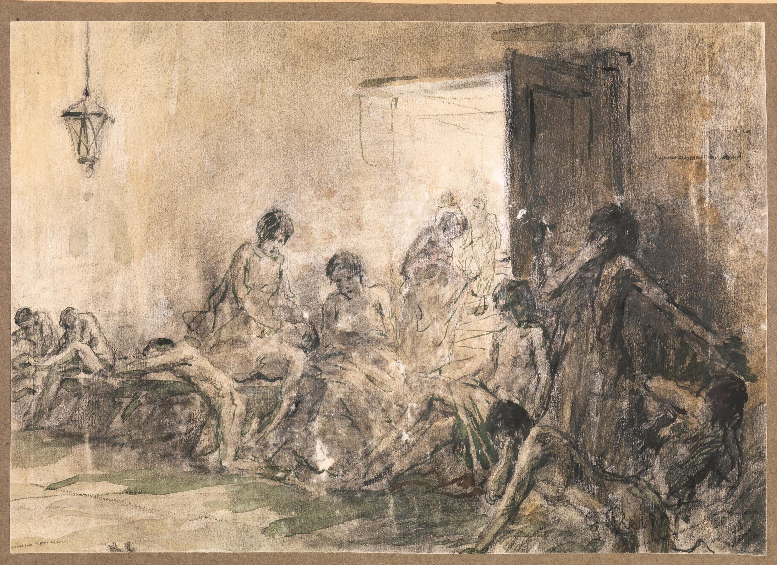 al verso del cartoncino di supporto un disegno a matita nera raffigurante figure femminili (parte di un disegno originariamente più ampio) anche esso ascrivibile per stile alla mano di Previati.