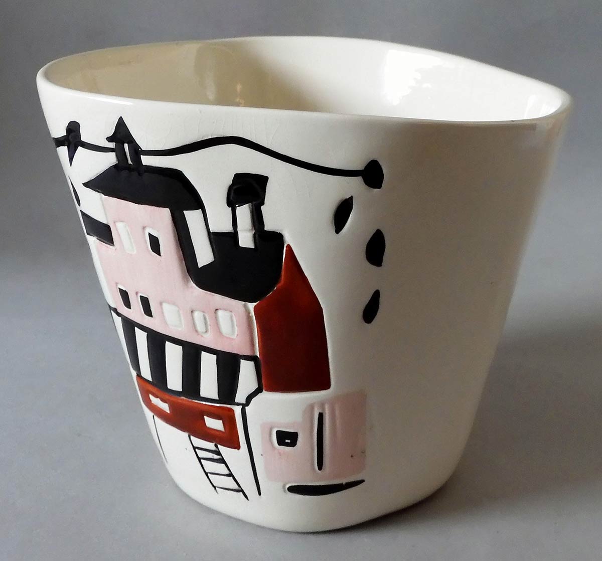 Portavaso decorato con cassette policrome a bassorilievo