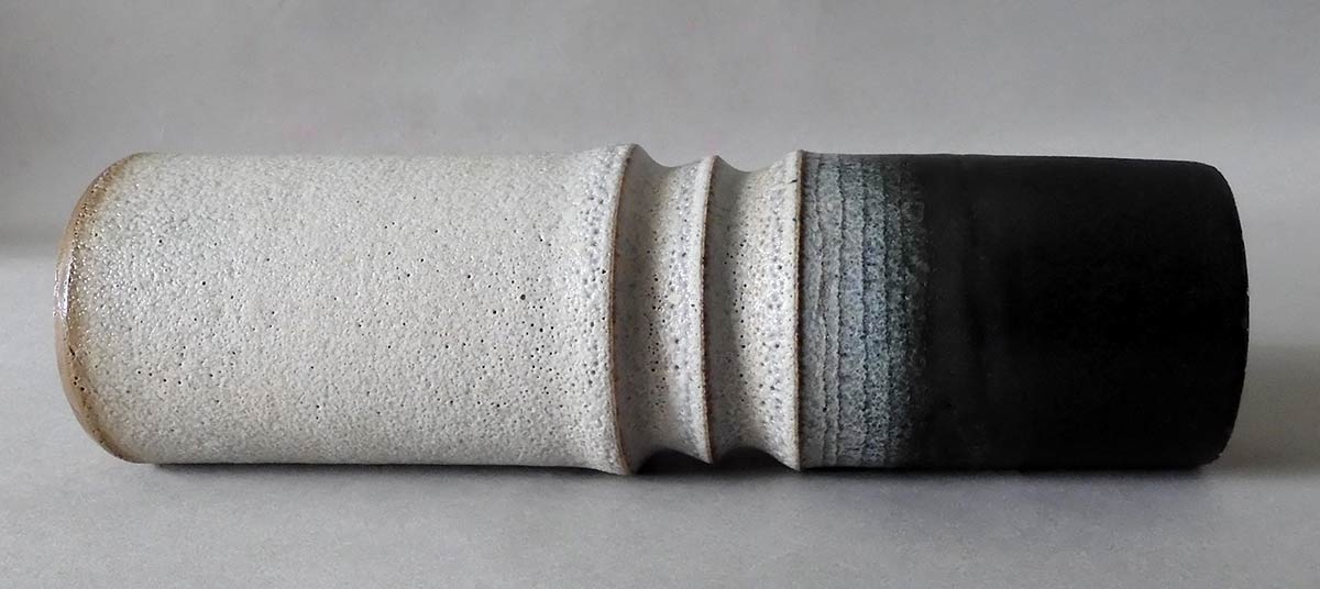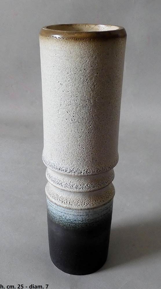 Vaso cilindrico in gres grigio e bruno