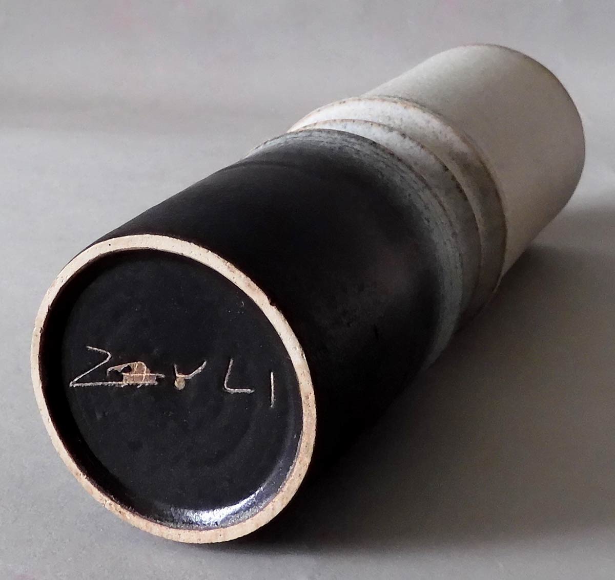 CARLO ZAULI (1926-2002) - FAENZA <br>Vaso cilindrico in gres grigio e bruno