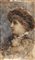 "La tavoletta, curiosamente descritta da Giolli come dipinto "su una tavolozza" e dallo stesso datata al 1888, sembra uno studio per il dipinto precedente (cfr. Il cappello di paglia): identici, infatti, appaiono i catatteri somatici del viso, i capelli e il berretto. Rari e di fondamentale importanza sono gli "schizzi" che, come questo, riflettono le fasi iniziali dell'approccio ranzoniano alla rappresentazione di un volto. L'opera è dunque testimonianza pressocchè unica e insostituibile sul metodo seguito dall'artista per impadronirsi del personaggio da ritrarre. La gestualità con cui il colore è buttato sulla tavola, con la spatola, con le dita, con le pennellate nervosamente vibrate e poi raschiate, rivela quella potenza espressionistica e quella passione a stento controllata che sottende la ritrattistica ranzoniana e che, spesso purtroppo, l'opera finita non possiede più. Di difficile datazione, proprio per la sua unicità (l'incuria deve aver distrutto alrti simili esempi), lo "schizzo" va riferito al biennio 1872-73, per il citato collegarsi del dipinto precedente (cfr. Il cappello di paglia)."