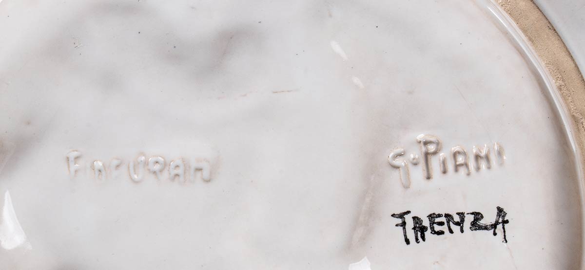 GIANCARLO PIANI (1940-1999) - FAENZA <br>Piatto decorato con rappresentazione di un animale fantastico