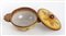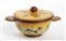 Tazza da brodo di colore giallo con decoro di animale e vegetazione stilizzati
