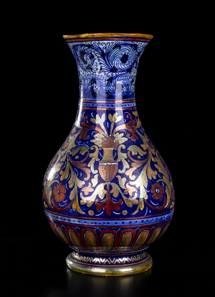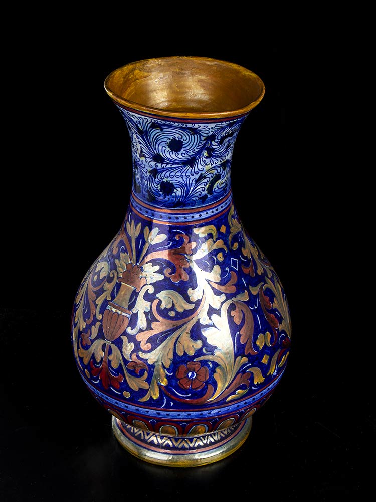 MASTROGIORGIO <br>Vaso blu con decorazioni dorate e bronzo