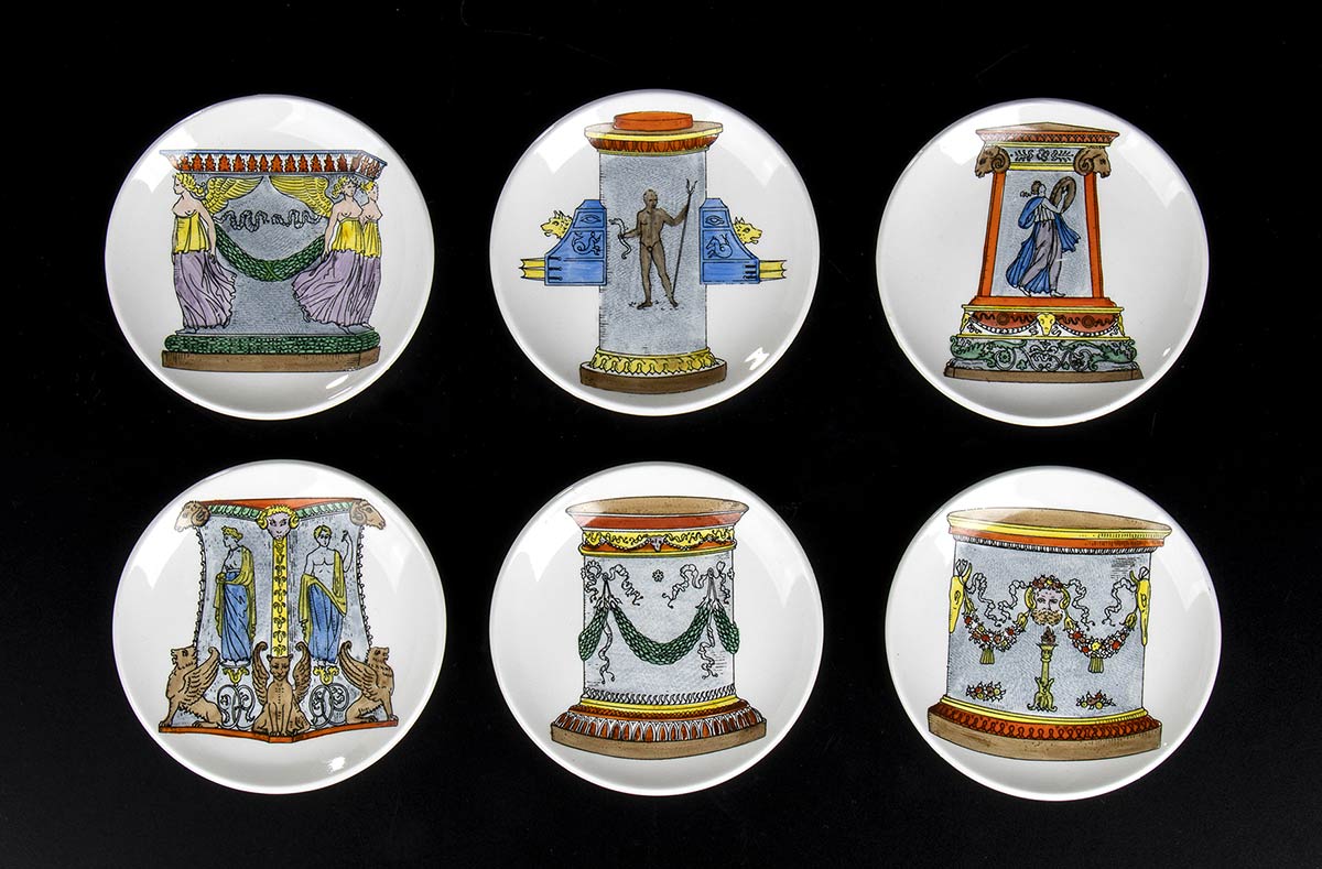 Sei piattini decorati con motivi greci