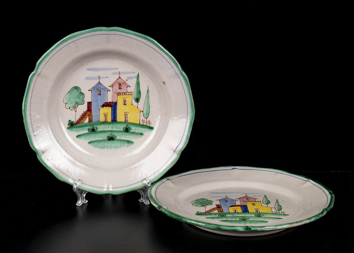 CAS VIETRI <br>Piatto e scodella con paesaggio e bordo verde